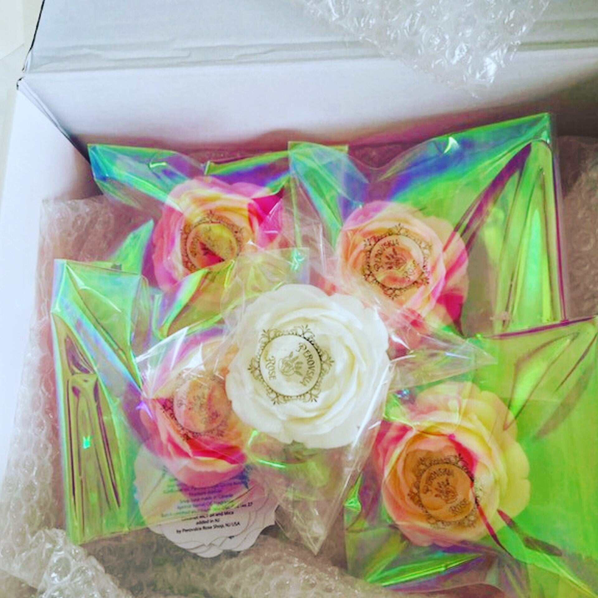 Each delicate pink rose arrives individually wrapped with ingredient details, perfect for gifting or enjoying in your own home.